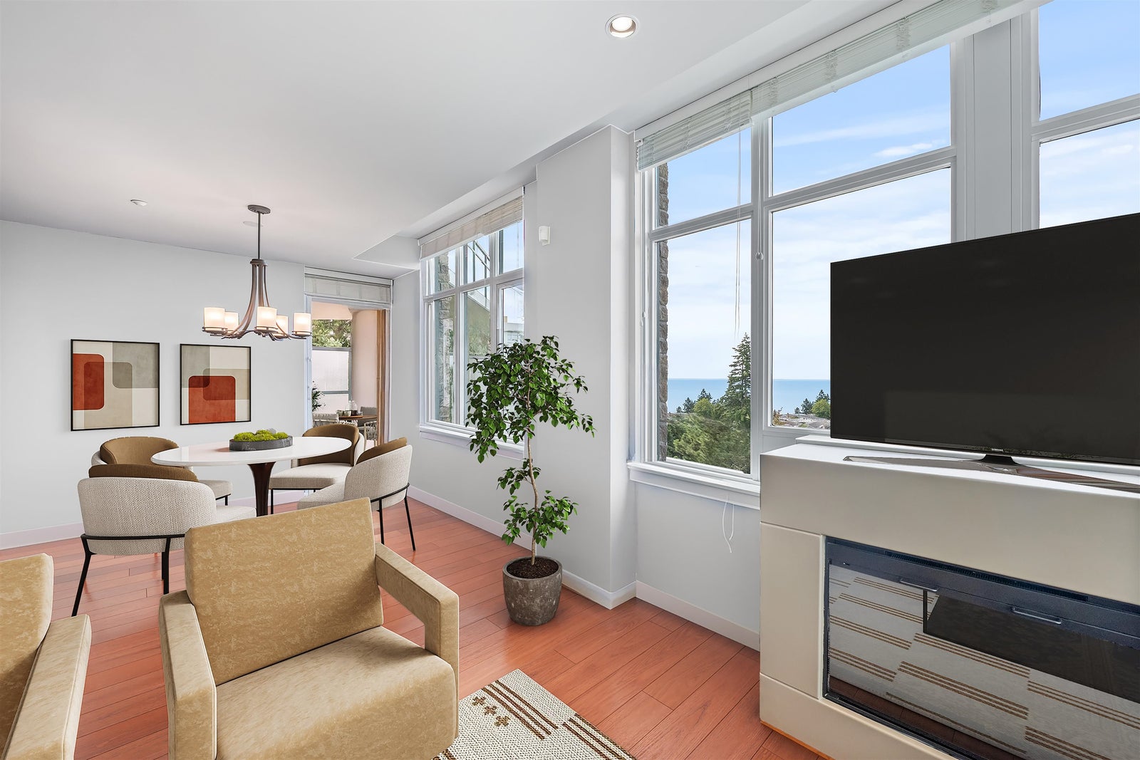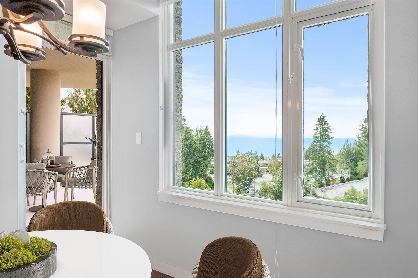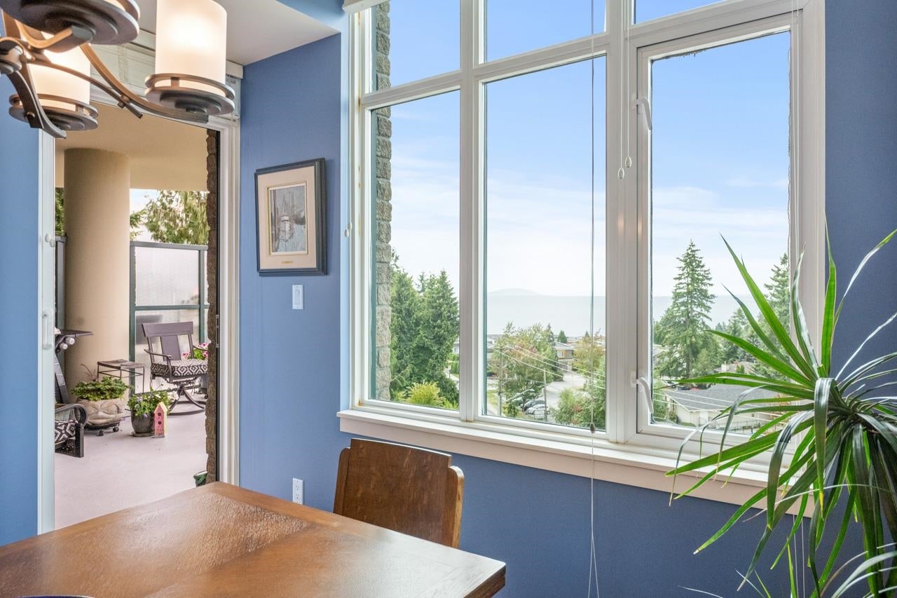 Ocean View at The Belaire, exceptional building and a prime location. Southwest corner, enjoy both ocean views and sunsets 1,333 SF of living space. Secure concrete & steel construction. A/C, plenty of windows streaming natural light. No buildings looking in at you - just fresh ocean air. Two bdrms and den, generous primary with balcony access & spacious 5 piece ensuite - ample closets. Enjoy the ocean view S/W concrete balcony 140 SF. Secure underground parking side-by-side at elevator for 2 cars and visitor parking avail. 1 storage locker. Transit out front or walk 2 blocks to groceries, shopping recreation and schools. 2 pets: max 50 kg in total. Schools: Semiahmoo Secondary. Nat gas & heat pump, A/C included in strata fee $755/Month. Digital floor plan & brochure available